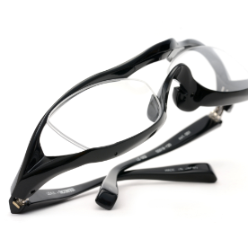 このLXF-001は、フレームをレンズカーブから独立した自由な曲線でデザインし、顔へのフィット感とクリアな視野の確保を実現しました。