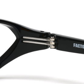 FACTORY900の隠れた技術であるヒンジシステム。板バネ式のシンプル構造ながらも、一般的に用いられているスプリングヒンジの特性を兼ね備えています。本ヒンジシステムは板バネ式を応用し、より壊れにくい構造に。たとえ壊れたとしても容易に交換が可能です。独自の技術で極上の掛け心地を実現しました。