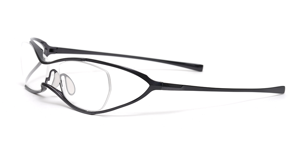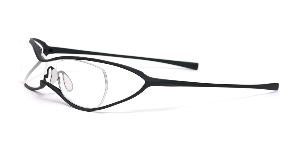 このLXF-001は、フレームをレンズカーブから独立した自由な曲線でデザインし、顔へのフィット感とクリアな視野の確保を実現しました。