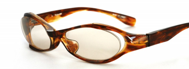 FA-091を基に、面を作り込むことで洗練された美しいラインを生み出した「フローティングスタイル」。ブリッジは前に出し、ヨロイは窪ませることで1本のフレームのなかで強弱を付けています。エッジを効かせすぎない柔らかな面で、個性的な造形に柔和な印象をプラス。