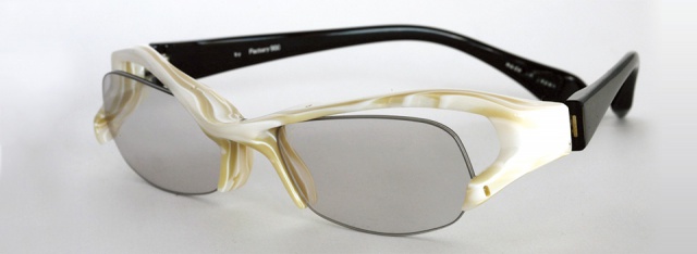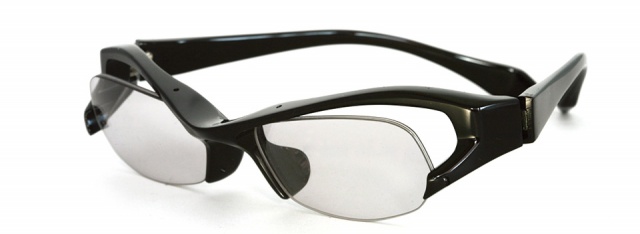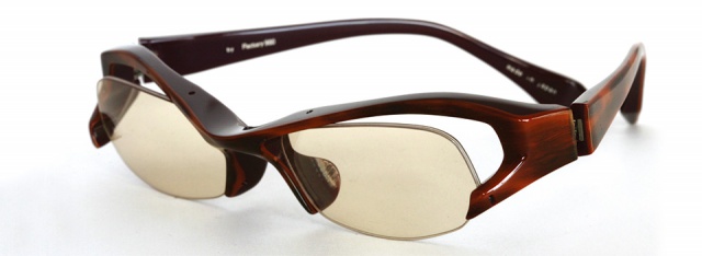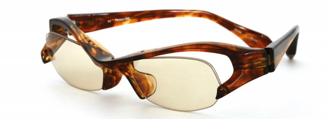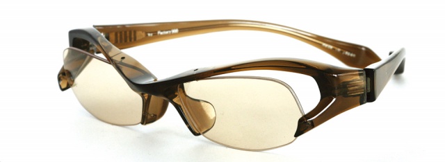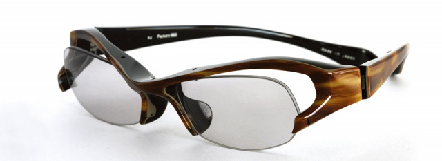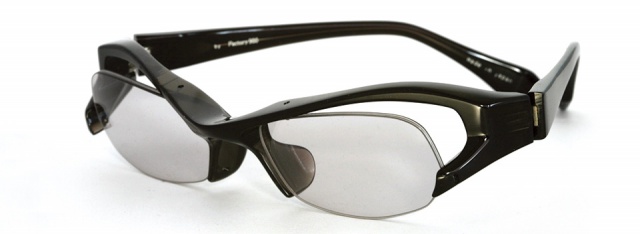 前に突き出たブリッジからブロウが後ろに大きく流れ、窪んだヨロイにつながる――。その立体的なラインが斬新かつ近未来的なナイロールタイプです。フレームとレンズの隙間を大きくもたせることで、正面から見ると普通のナイロールでも、横顔は存在感たっぷり。
