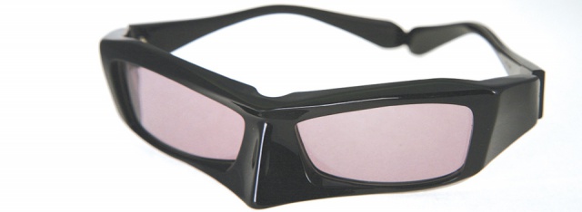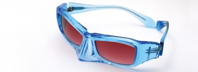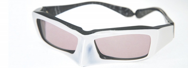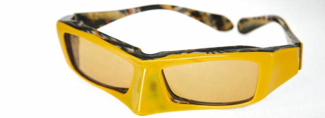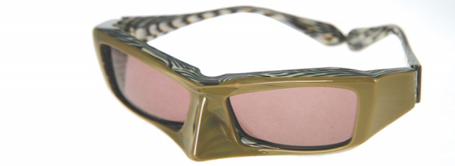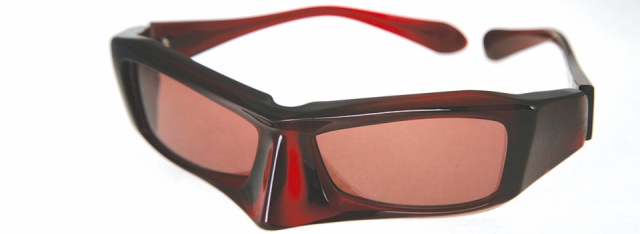 フロントと鼻梁が一体型という斬新なスタイルを提案した「マスク」は、デザイナ―・青山の「誰も見たことがないカッコいい眼鏡を作りたい」という想いから生まれました。まるで仮面のような立体造形は世界でも類を見ない高度なアセテート加工技術で実現しました。