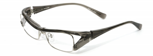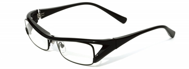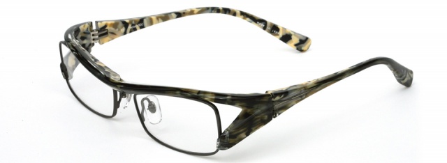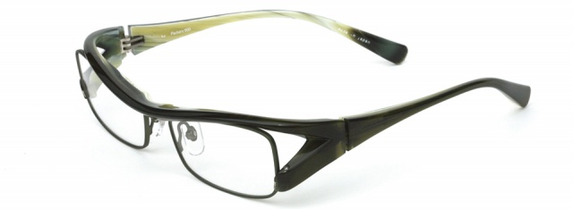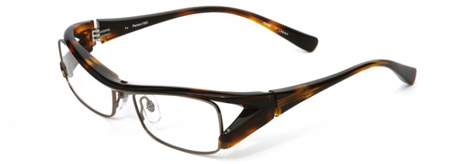 メタルリムにアセテートのストレートブロウを合わせたコンビモデル。なだらかなブロウラインに、ヨロイの半菱形状の意匠が絶妙なアクセントになっています。実はデザイナー・青山がどうしてもチャレンジしたかったデザインで、疾走感溢れるラフスケッチから生まれました。
