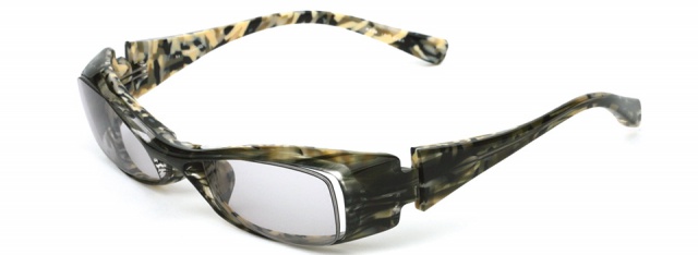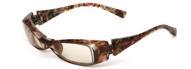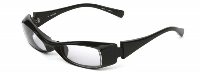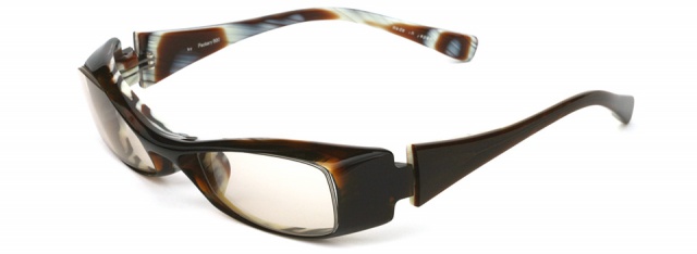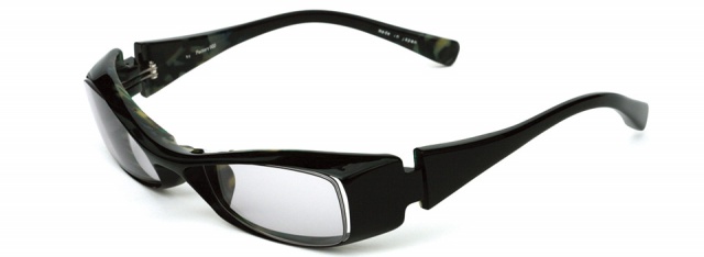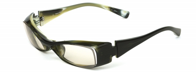 「やんちゃな大人」に掛けてほしい横長スクエアモデル。ヨロイはフラットな面を大胆に見せ、テンプルまでつなげずに “くさび型” のように一旦止めることで、シャープなデザインを際立たせています。正面から見るとシンプルですが、横顔で個性を発揮できます。