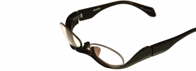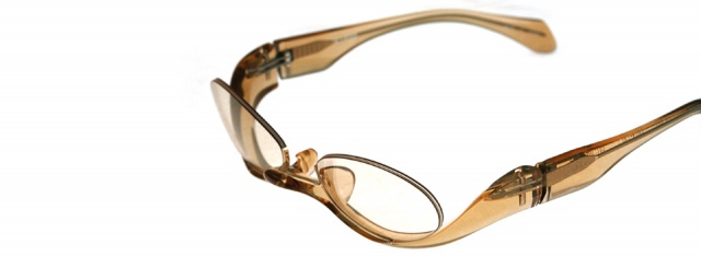 流線型を追求したアンダーリムモデル。下から突き出たブリッジからヨロイまで、ダイナミックにつながるラインが最大の特徴で、そこに少し小振りなオーバルシェイプを合わせて柔らかみを出しています。8mmのアセテート生地の厚みを感じさせない、滑らかな面もポイントです。