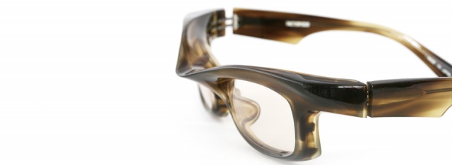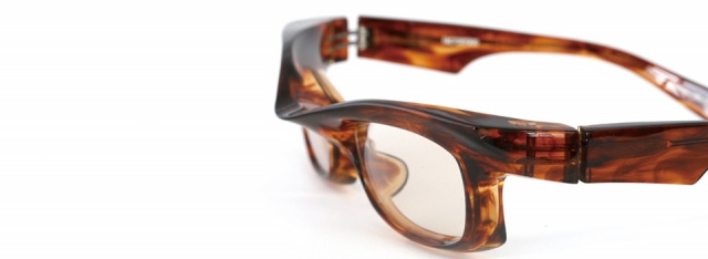 アセテート生地を横に寝かせて使用することで、前にせり出た肉厚で流麗なブロウバーを表現した異色のウェリントン。初期衝動に忠実であろうと、あえて「デザイン一発勝負」で3週間と製作期間を区切るという実験的な製造工程から、疾走感溢れるモデルが誕生しました。
