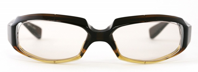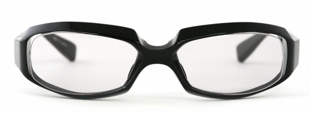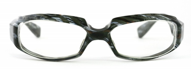 厚さ8mmのアセテート生地を採用。ボリューム感はありながらも、フロントリムにエッジを効かせてヨロイをシンプルにすることでスマートな造形に仕上げています。太いブリッジや天地幅のあるレンジシェイプと男らしいデザインで正面から見た時にリムが強く見えるのが特徴。