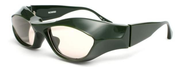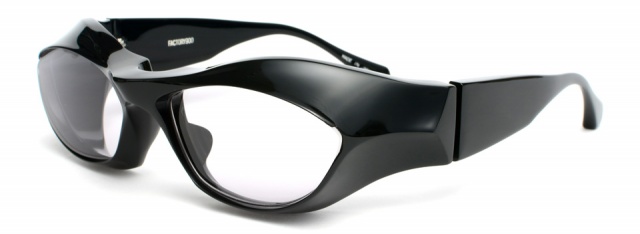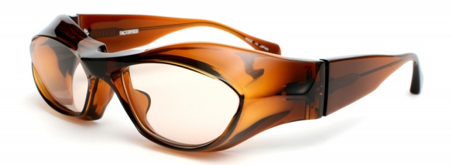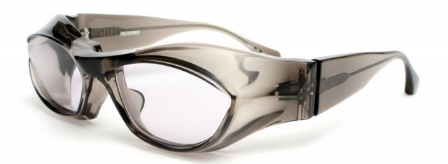 レンズ面を平行に保ちながらフレームは顔に密着させて密閉度を高め、眼鏡でありながらゴーグルの機能を付加した。