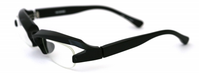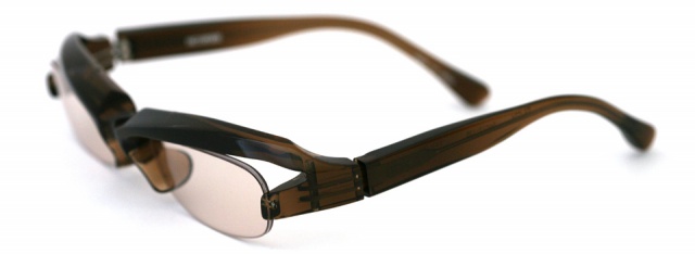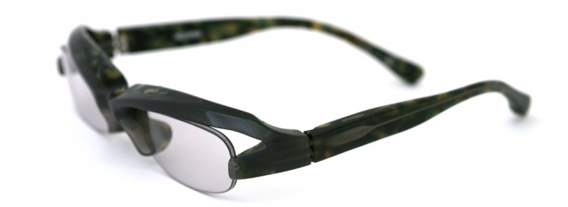 ブローラインに特徴のある70番台。 ハーフリムにすることにより直線的なブローラインを強調している。 正面を三次元的にねじった面で造形し、更にレンズの天地幅を浅くすることにより、よりブローを強調し全体のバランスをとっている。