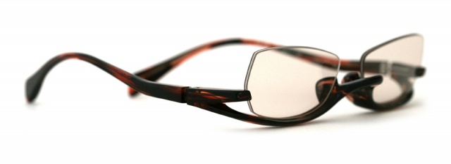 その分テンプルで持ち上げ、かけた時のつじつまを合わせると共に、細いラインが躍動的に顔を走る。