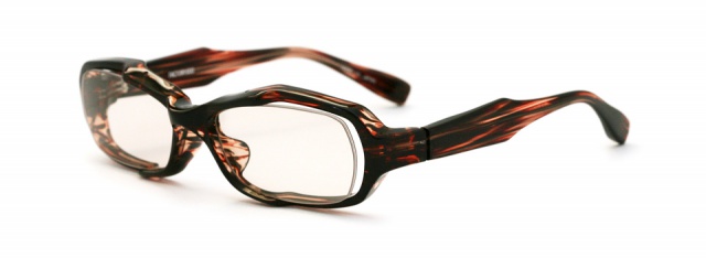 ゴツゴツした無骨さを出すためにあえてラインのだまりをつくり、つじつまのあわない造形に。 全体的に大きめに作っているので、大柄な人にこそかけてもらいたいモデルです。