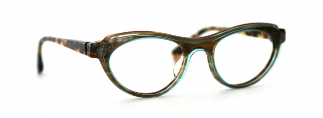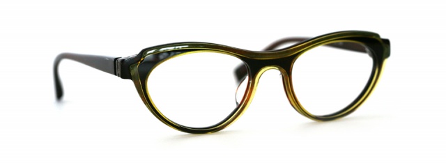 生地を3層に重ねたレイヤードシリーズ。フォックスタイプ。 2層目の生地を切削により削り取ることでレイヤードを表現。アセテートフレームの色の表現の可能性を広げた意欲作。