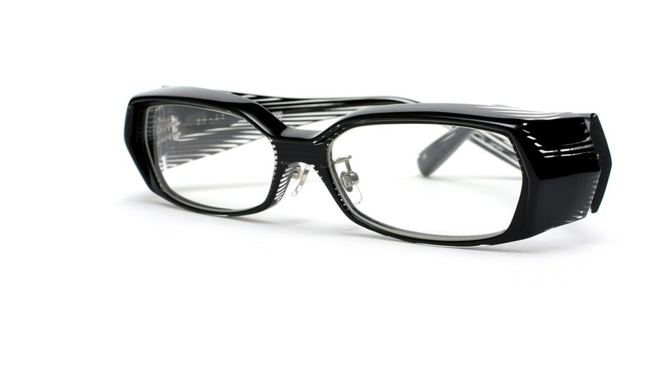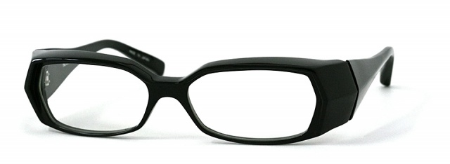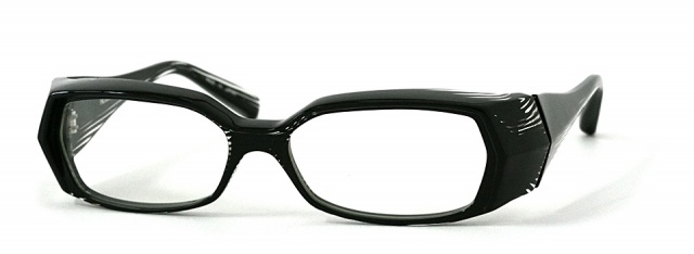 レンズの入るフロントが一段下がり、その周りを短い“ツバ”が覆う。 ヨロイ部分から三角テンプルへ繋がるライン、全体に立たせたエッジ。 顔に合わせた瞬間全てのつじつまが整い、万能なモデルに。