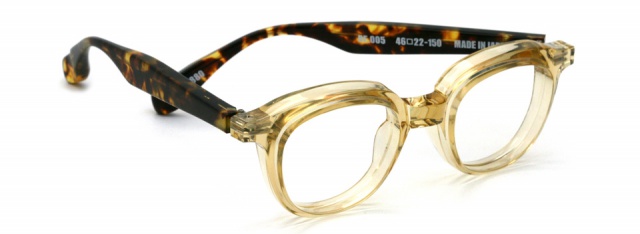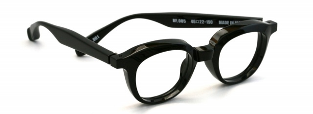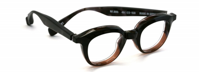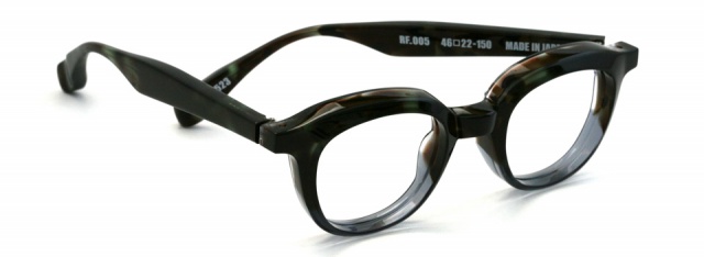 RETROシリーズらしい肉厚な形状でありながら、レンズシェイプはオーソドックスなウェリントンを採用し、様々なシーンで着用していただける。RF-004同様、テンプルは1stモデルよりも細身になり、これによって生まれるフロントからサイドまでの流れるような繋がりがスマートな印象に。フロント前面のカットがクラシックな玉型に柔らかさをもたらし、女性にもスタイリングしやすいモデル。