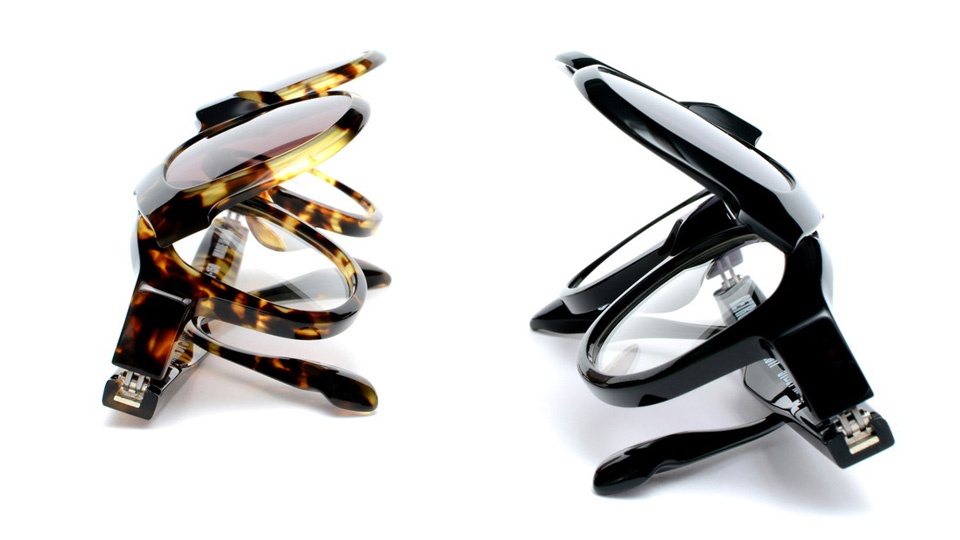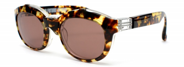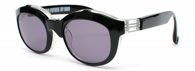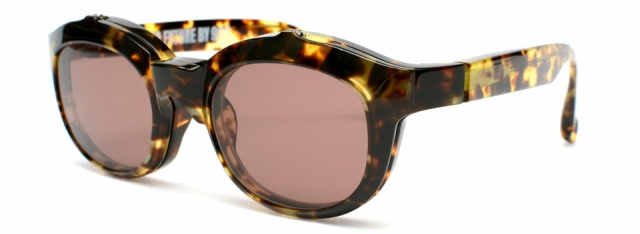 今までに類を見ない、アセテート同士の複式と呼ばれる跳ね上げ式サングラス。ヒンジを極力シンプルにし、一本のメガネをスライスしたかの様に見えるその完成度の高さは、青山眼鏡の確固たる技術力があってこそ生み出されるものであり、他とは一線を画すモデルに仕上がった。機能性だけでなく、オーソドックスなウェリントンのレンズ形状、跳ね上げ部分と本体の一体感により様々なスタイリングに違和感なく溶け込むデザインとなっている。