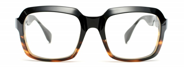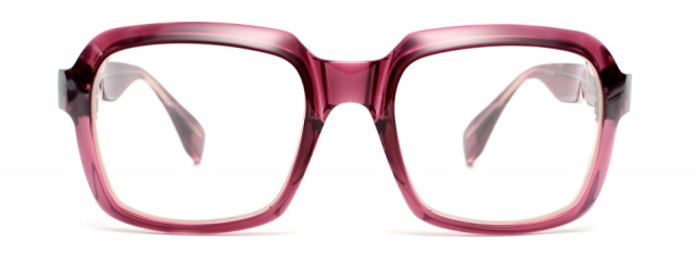 70年代を彷彿とさせる、ビッグシェイプのスクエアフレーム。見た目の野暮ったさが出ないようにリムを細くし、フロントのカット面により立体感を出すことで、当時の空気感を残しながらも洗練された雰囲気に仕上がっている。RF-012と同様、テンプルの厚みを削ぎ取り軽量化と共に着用感の安定を図っている。フロント前面の削り出しにより、アセテートの質感が際立ちクラシックな玉型との調和がスタイリッシュな印象を演出する。