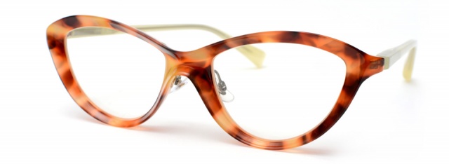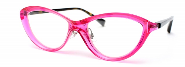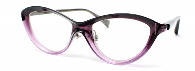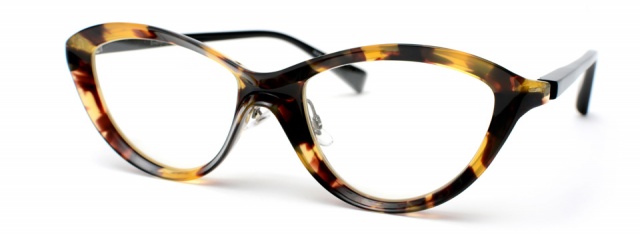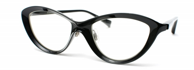 一見、大胆なテレビジョンカットを施されたボリュームのあるフレームに見えるが、一枚のシート材を折り曲げて、面のみで構成された”構造体”として作られているため、非常にスリムで軽く、かけ心地の良いデザイン。見る角度によって、リムの厚さに強弱が生まれる「だまし絵」的な要素もユニーク。