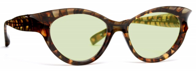 柔らかな造形面による圧倒的な存在感。 フレームとテンプルの前面を全て逆アールの面造形で構成し、どこまでも綺麗な曲智を表現。 かけた時に女性の魅力を引き立たせる次世代のフォックスタイプ。