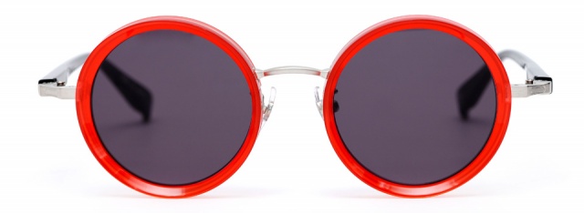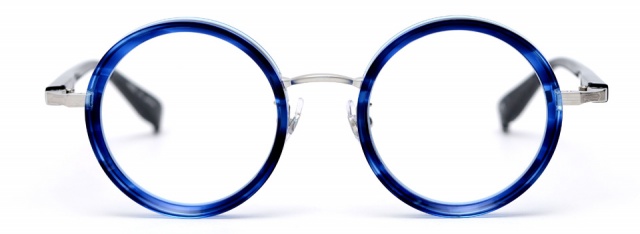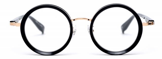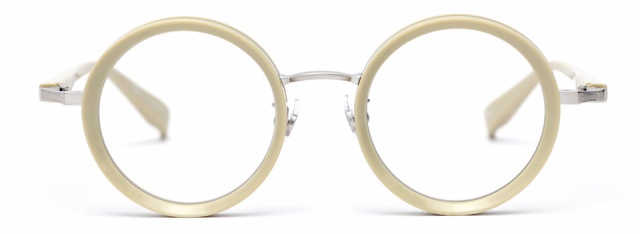 無機質な印象になりがちなメタルのフロントに、テレビジョンカットを施したアセテートを組み合わせエッジを効かせた。異素材との組み合わせにより、アセテートの持つ質感を最大限に活かし、RETROの世界観に新しい表情が生まれた。やや大きめのラウンド型は様々なファッションに取り入れやすく、個性を引き出してくれる。