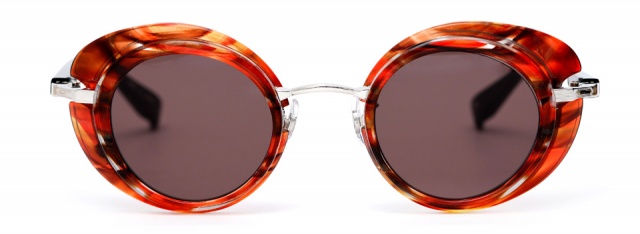 FACTORY900らしいゴーグルのようなフード状のフロントパーツが、クラシカルでありながら未来感を漂わせる。アセテートを最大限に活かしたコンビネーションフレームは、その絶妙なサイズ感と玉型により女性でもスタイリングしやすく、都会的な雰囲気を演出してくれる。ノスタルジックな匂いを感じ取れるRF-052は、鮮やかなカラーバリエーションも魅力。