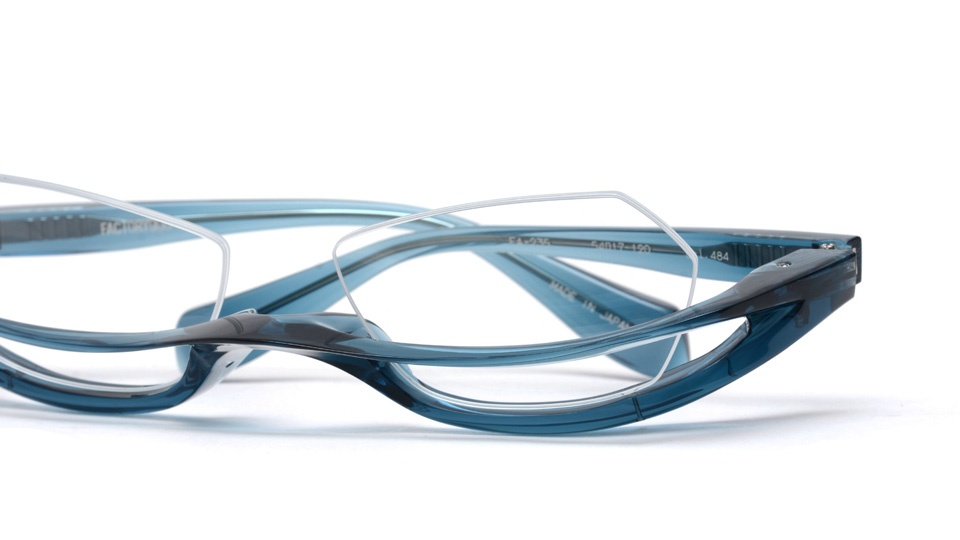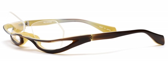 ブローラインを大きく下方に下げ、レンズ前面にかかる全く新しい“アンダーブロー”スタイル。デザインするにあたりブローラインという概念を捨て、あるべき所、あってはならない所、という制限も一切排除し新しいスタイルを生み出すことだけに専念した。停滞する業界に刃を向ける、チャレンジモデル。