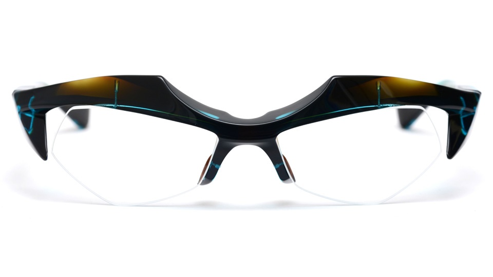 弧を描くブローラインを大胆にえぐり、ラインにめりはりを利かせた。変則的な玉型と融合することにより、一度見たら忘れられない強い印象が残るであろう。