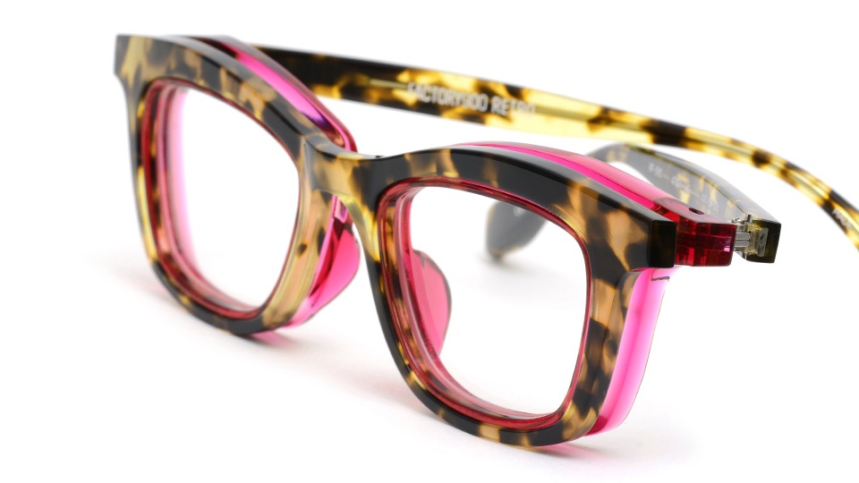薄いアセテートが二枚重なって見え、ポップでユニークなデザインが“新しさ”を感じさせるRF-090。