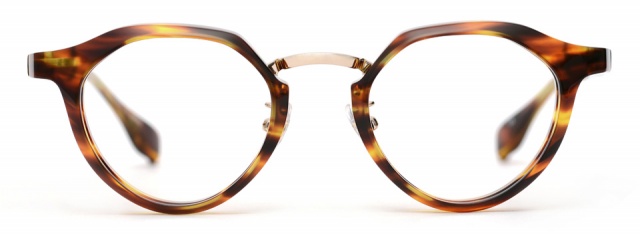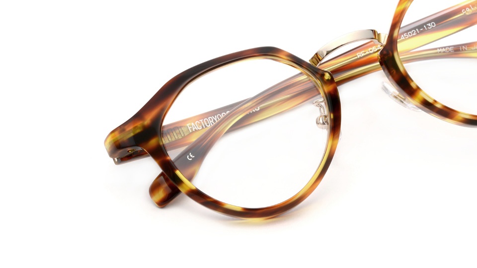 RF-050の兄弟型としてリリース。2mm短いブリッジのメタルパーツを採用し、それに伴いレンズ径とテンプル長を見直したことで、女性にも着用しやすいサイズ感となっている。レンズシェイプは丸みをもたせ、より柔らかい印象に。程よいクセを残しつつ、コンビネーションフレームならではの上品な印象がスタイリングしやすいモデル。