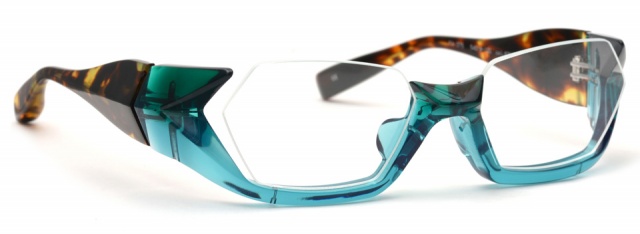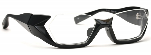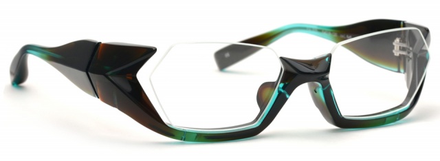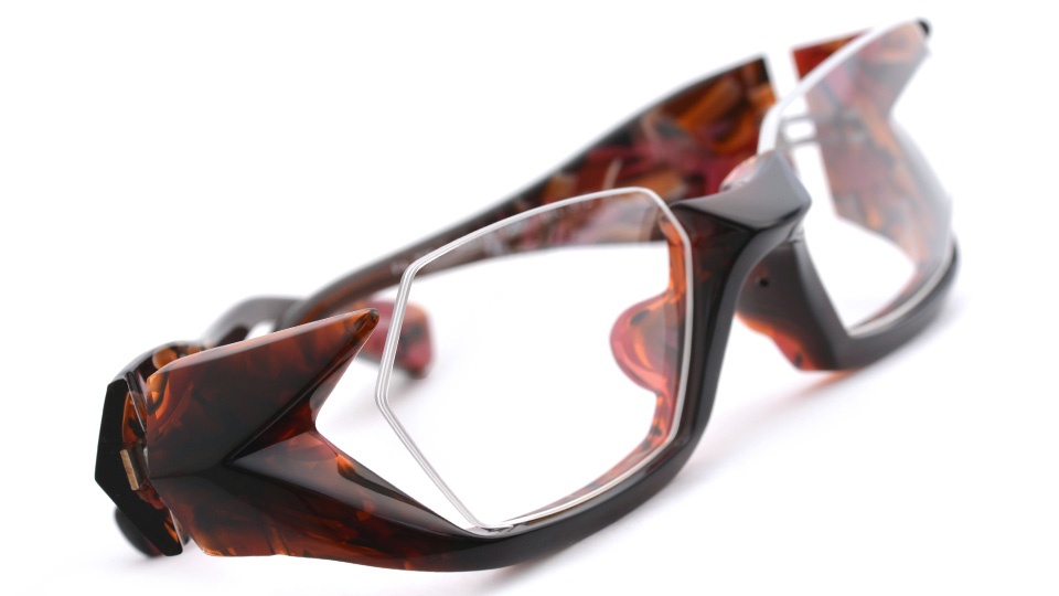 ブリッジからテンプルエンドまで綺麗なラインでつなげるのではなく、面や線に”たまり”や不規則な動きをつけることで、まるで顔の上にポリゴンを合わせた様なスタイルに仕上げた。そこに立体感や空間を持たせ、時代に左右されないアンダーリムに。