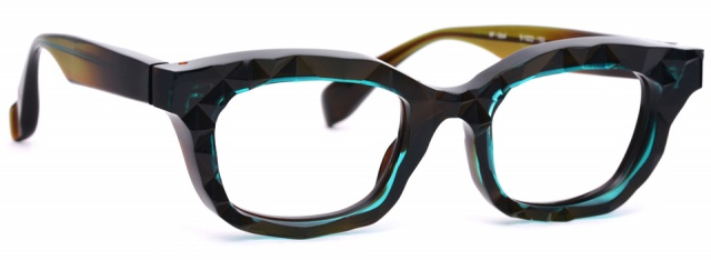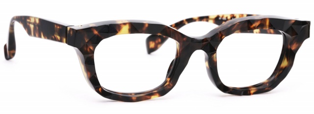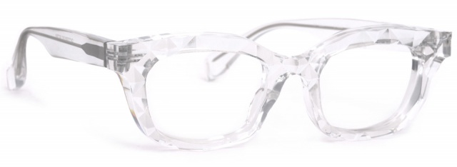 我々が誇る独自の技術を進化させ、左右非対称にランダムに配置させた大小のダイヤモンドパターンをフロント表層へ形成。不規則な光の反射や屈折が光を纏わせ、アセテートが持つ本来の美しさをより一層際立たせる。