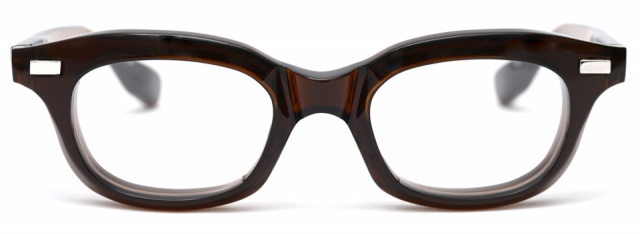 RETROシリーズの1stモデルを思わせるような、肉厚のあるフォルムからカタチ作られた無骨さを感じられるRF-041。立体造形の技術を盛り込み、重厚感のあるフレームにFACTORY900初の立体的飾り鋲を採用。磨き上げられたフロントの面造形と立体的な飾り鋲により、アセテートの温かみのある質感がより際立ち、上品な印象に仕上がっている。
