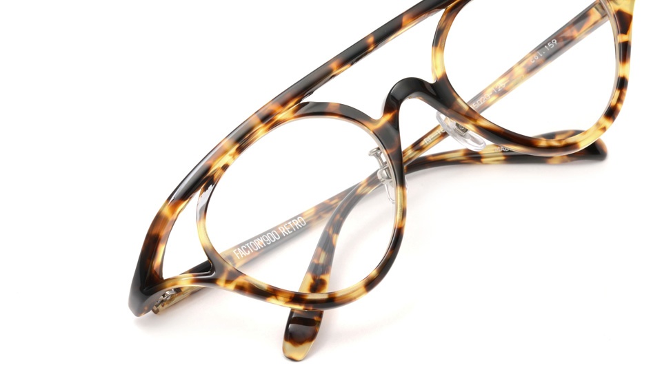 フレームの細さを限界まで追求し、アセテートでワイヤーフレームを表現した先進的なモデル。アセテートの素材強度を考慮しつつ、細身ながら立体的な造形をもつRF-100は製造工程における難易度も高く、FACTORY900の精巧な技術によって作られている。この“立体ワイヤー構造”により、メガネに新たな可能性を指し示した。