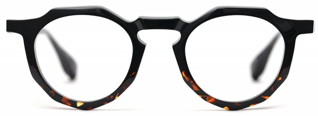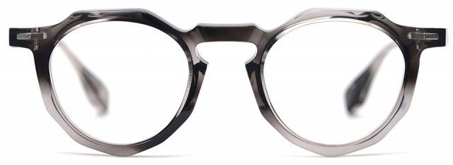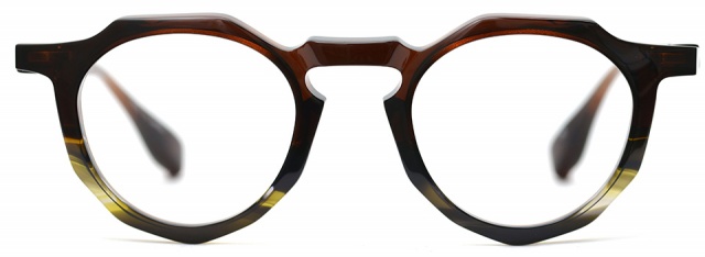 RF-034 と同じく、フロント部に2つの異なる厚みを持たせ、多彩な表情を表現することをコンセプトとしたモデル。フロントリムをエッジの効いた多角形のクラウンパントにすることで、柔らかさとメリハリのある印象を共存させた。巧妙なデザインの中に、豊かな表情の一端を表したモデル。