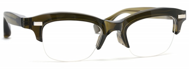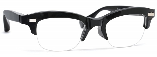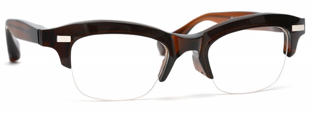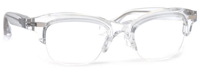 2019 SS Collection で発表した RF-041 に続き、立体的な飾り鋲をあしらったブロータイプ。独自の立体造形技術により形成された重厚感のあるブローフレームは、堅牢な見た目とは相反的に、アセテートが持つ温かみと肌馴染みの良さを確保した。