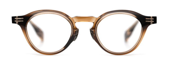 また、智からテンプルにかけてのエッジが効いた面と、滑らかなフロントとのギャップが都会的な印象を作り出す。